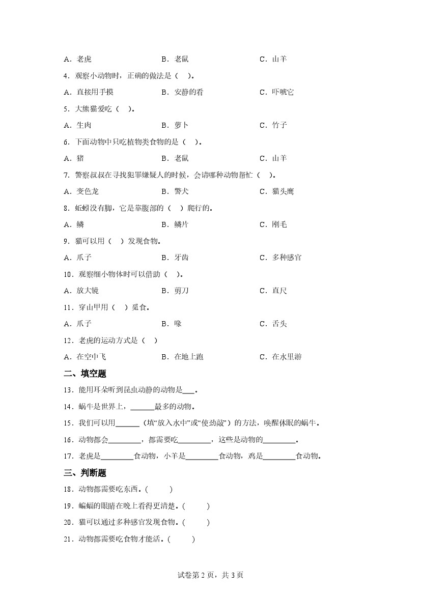 首页 > 全部 > 专项练习 > 第二单元 动物的生活(期中专项训练)二年级科学上学期(大象版·新教材)