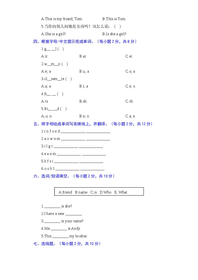 首页 > 全部 > 单元测试 > 人教版二年级上册英语 第二单元核心基础卷-Unit 2 Boys and Girls(含答案)