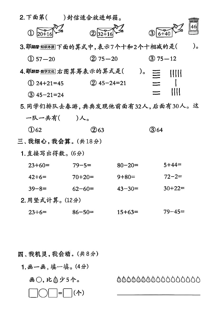 一年级(下)数学第五单元拔尖测试卷-《北师大》
