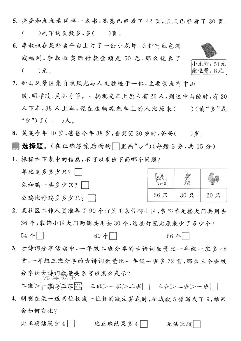 一年级(下)数学第六单元拔尖测试卷-45《苏教》
