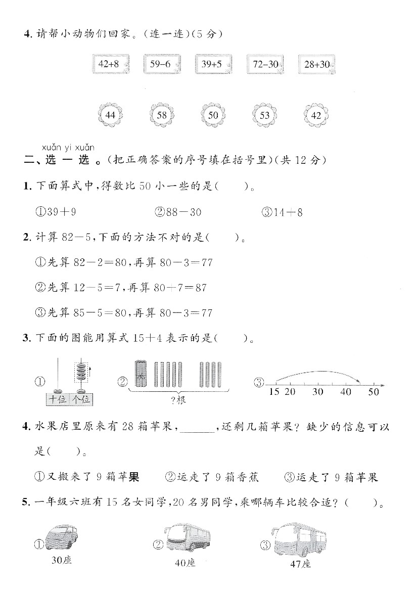 小学 2025青岛63一下数学第四单元拔尖测试卷1