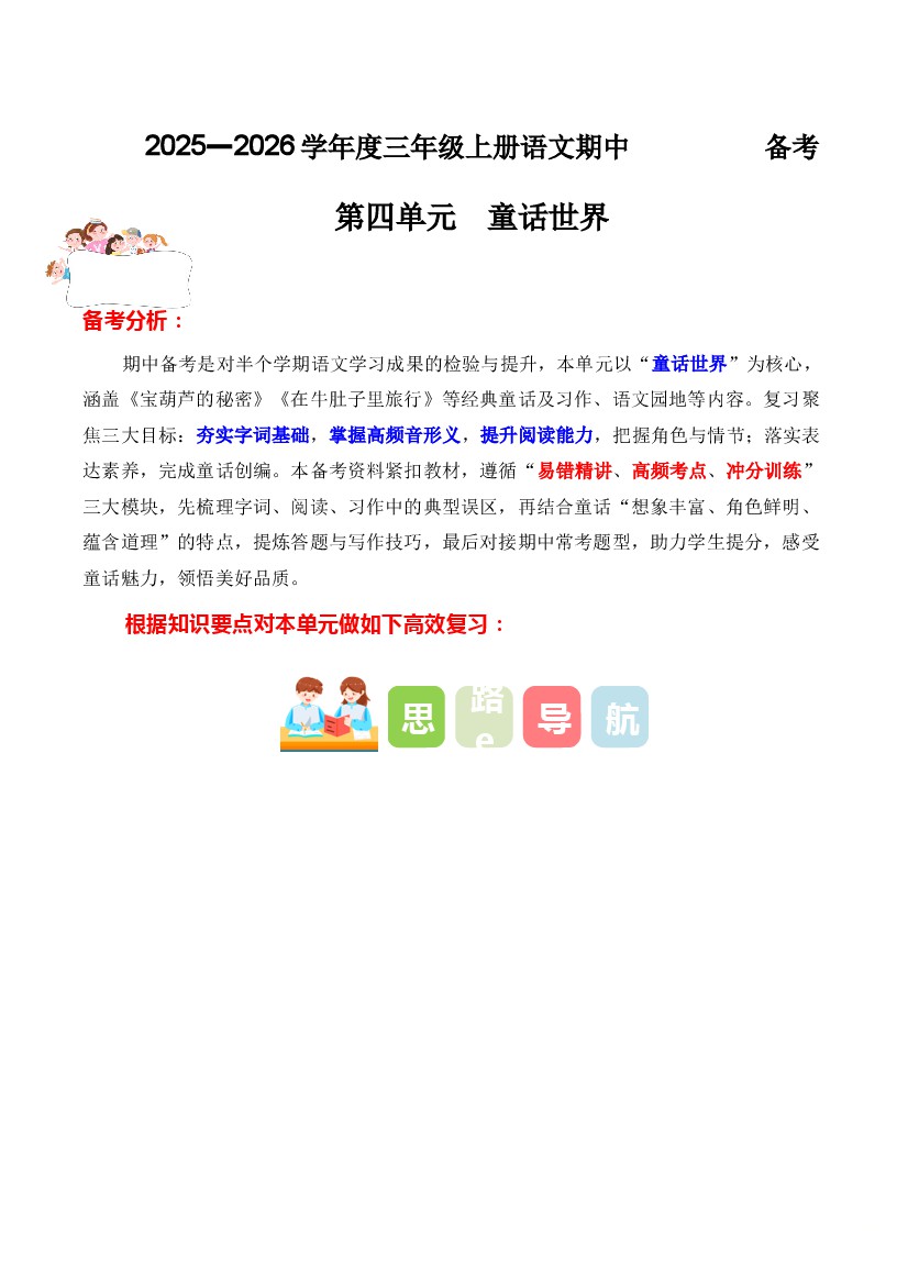 第四单元 童话世界(易错精讲+高频考点+重点训练)三年级语文上册期中高效复习备考(统编版·新教材)