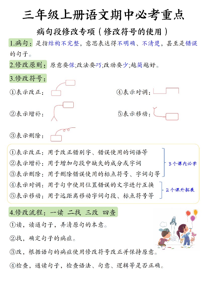 三年级(上)语文必考重点病句段修改符号方法及练习