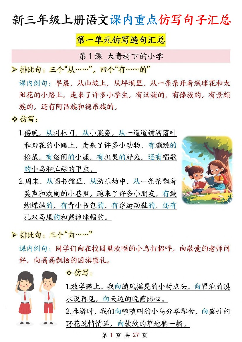 25秋三年级上册语文《1-8单元句子仿写》(共27页)