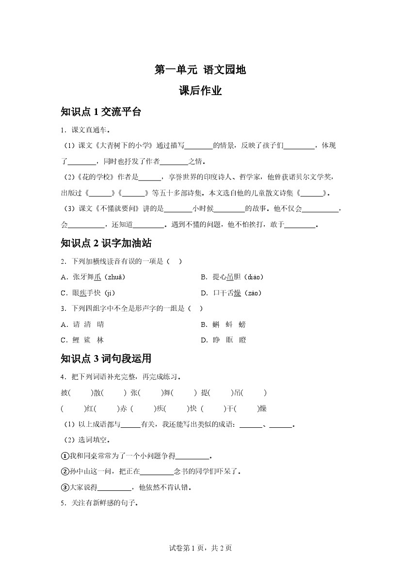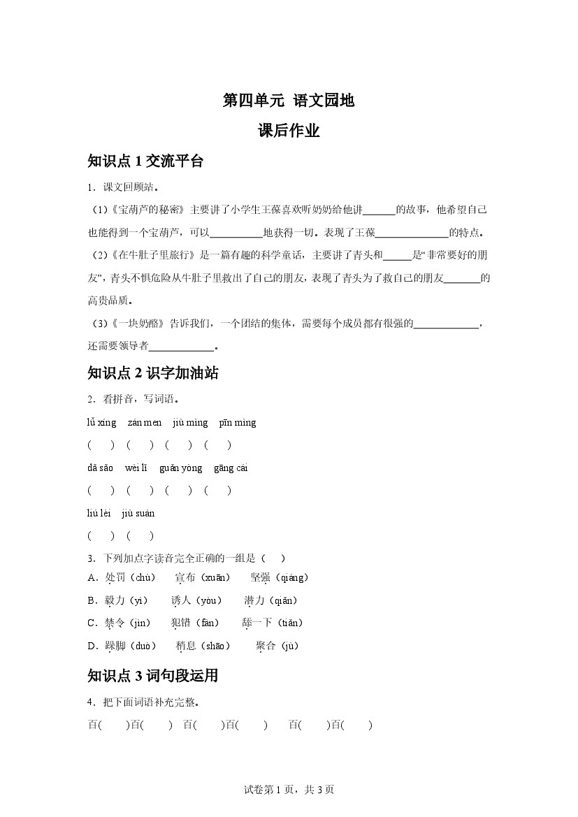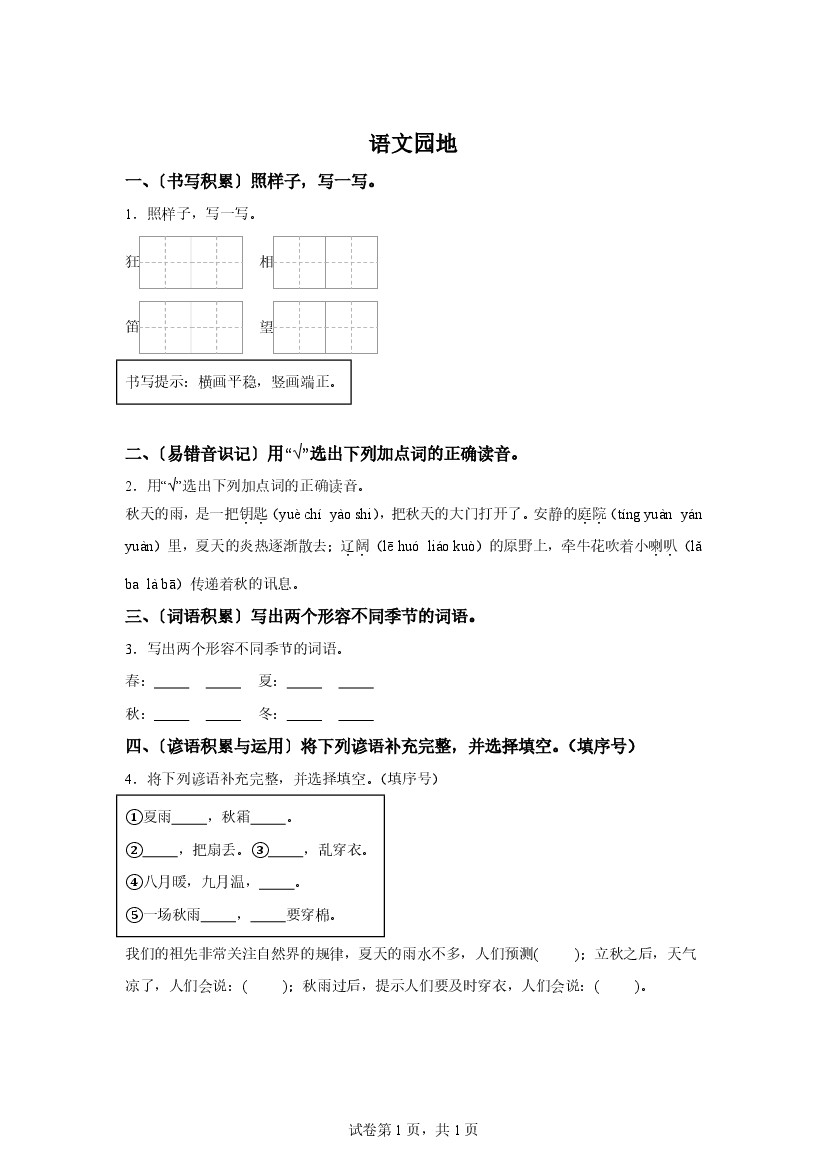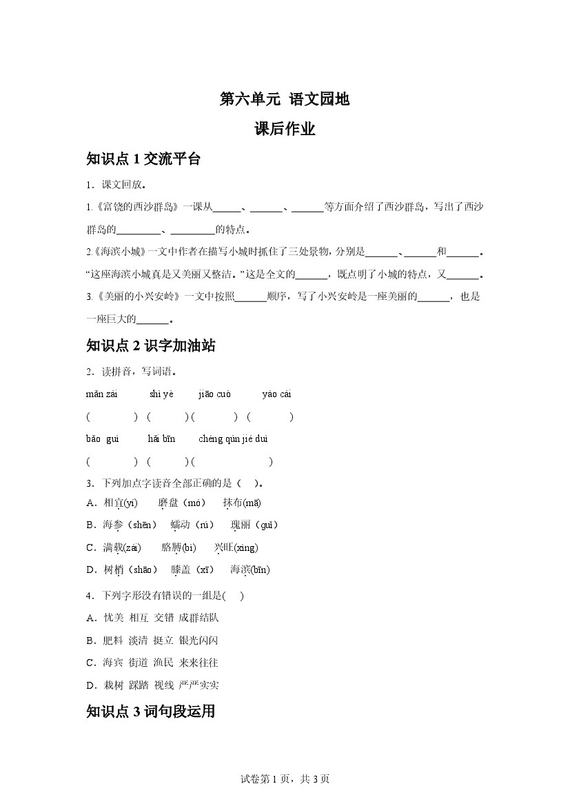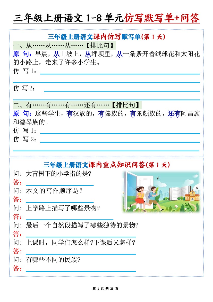 新三上语文1-8单元课内仿写默写单+课内重点知识问答(含答案46页)