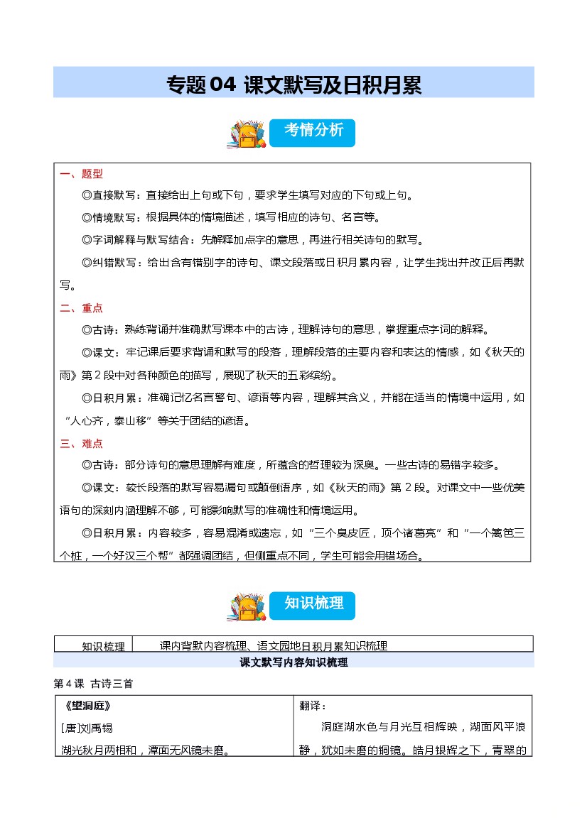专题04 课文默写及日积月累(期中专项训练)三年级语文上学期(统编版·新教材)