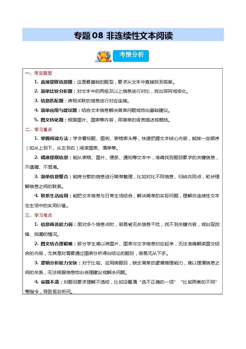 专题08 非连续性文本阅读(期中专项训练)三年级语文上学期(统编版·新教材)