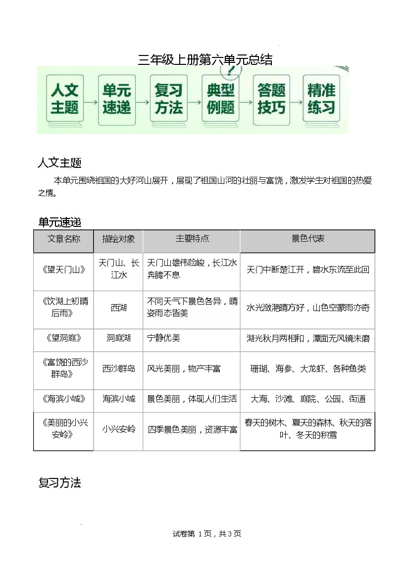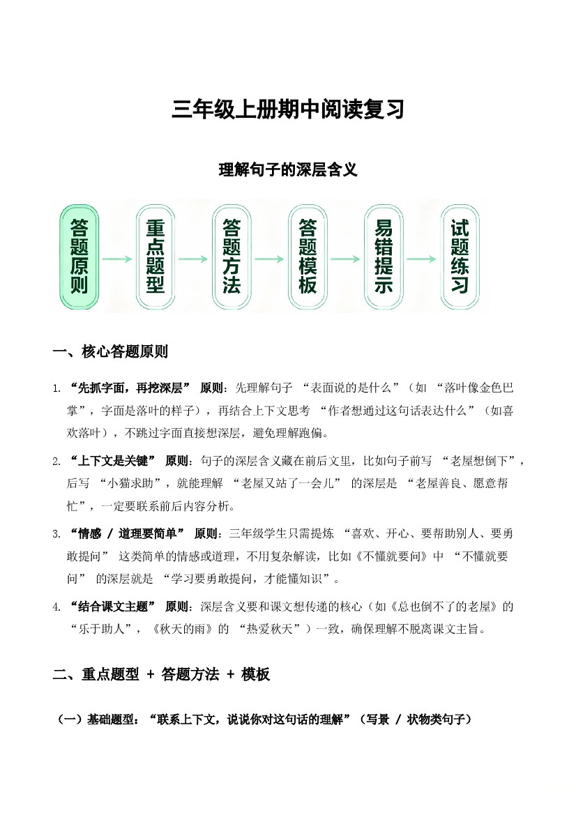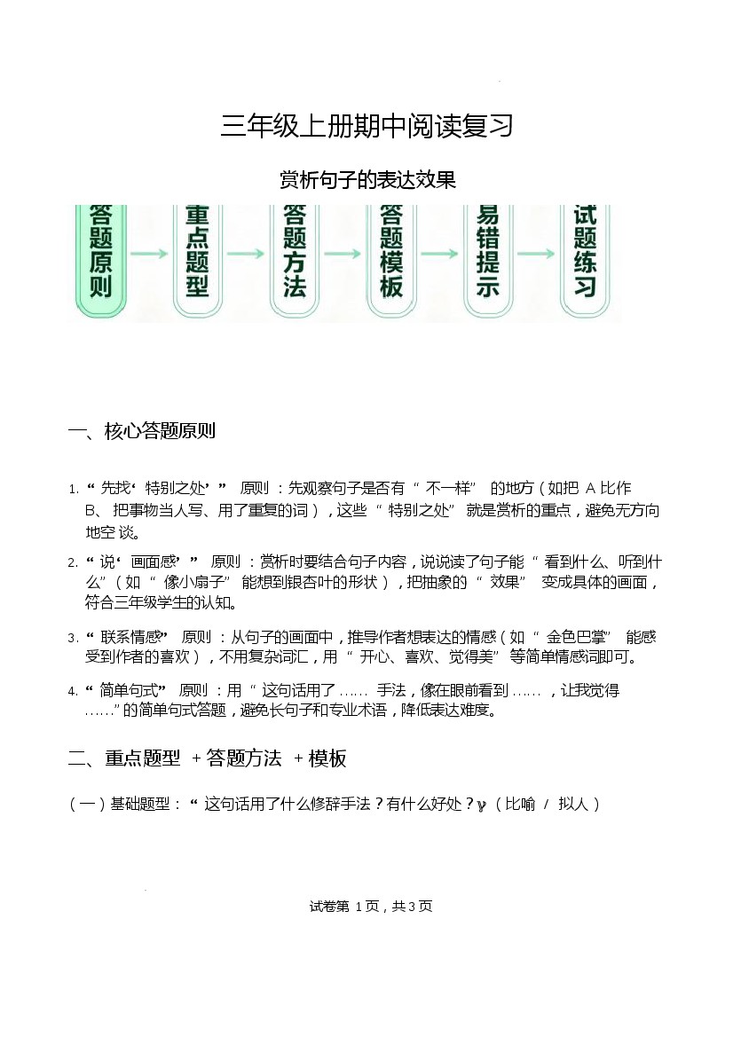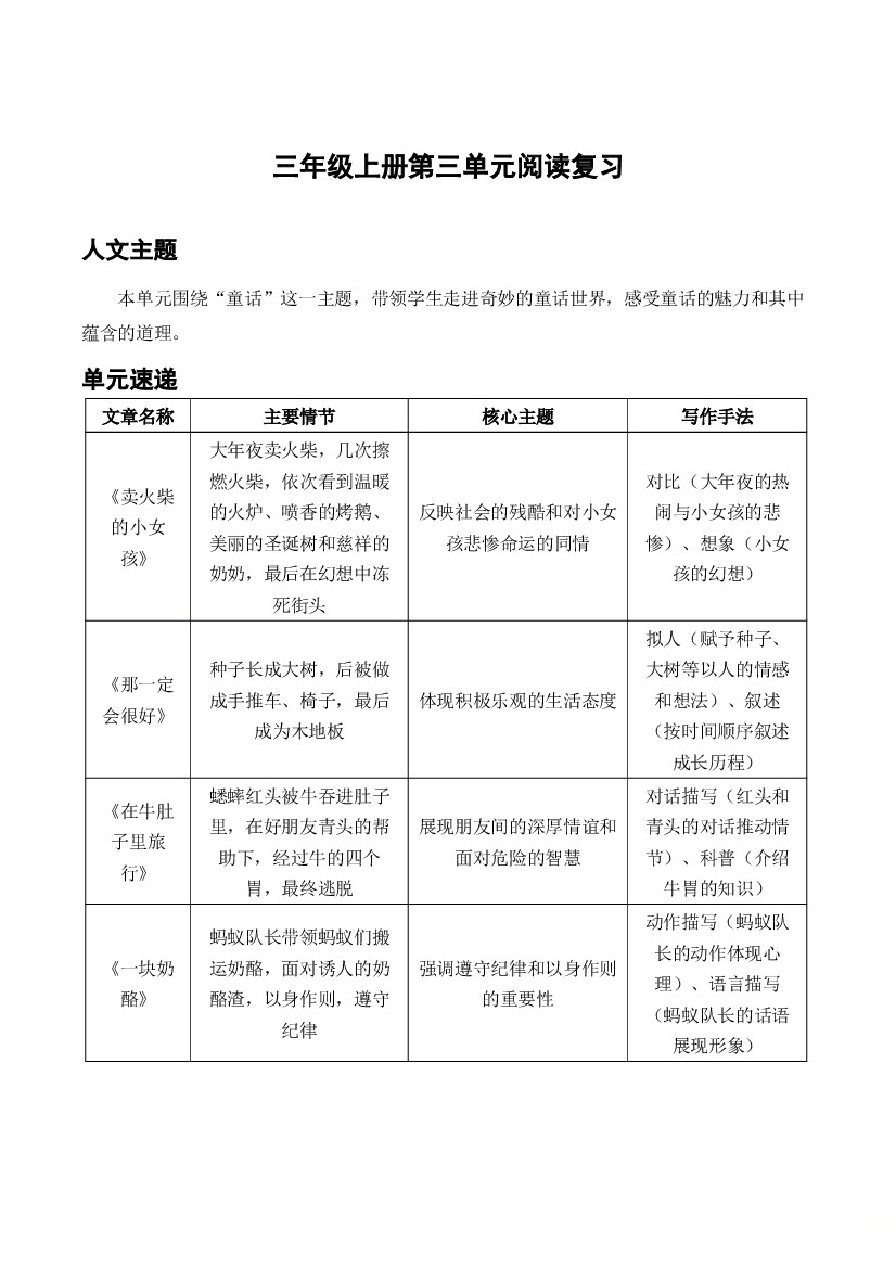 阅读复习+第三单元(期中专项训练)三年级语文上学期(统编版·新教材)