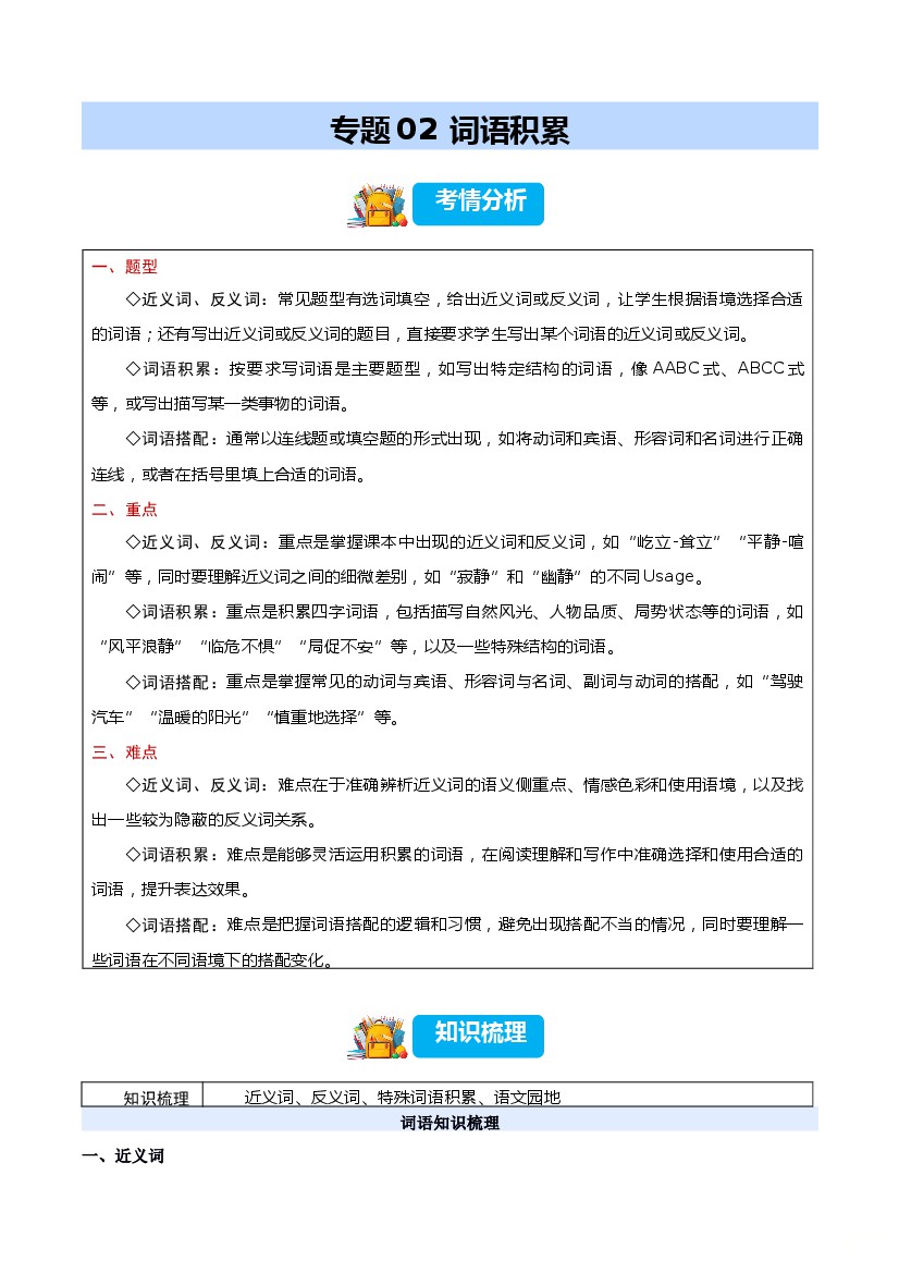 专题02 词语积累(期中专项训练)三年级语文上学期(统编版·新教材)
