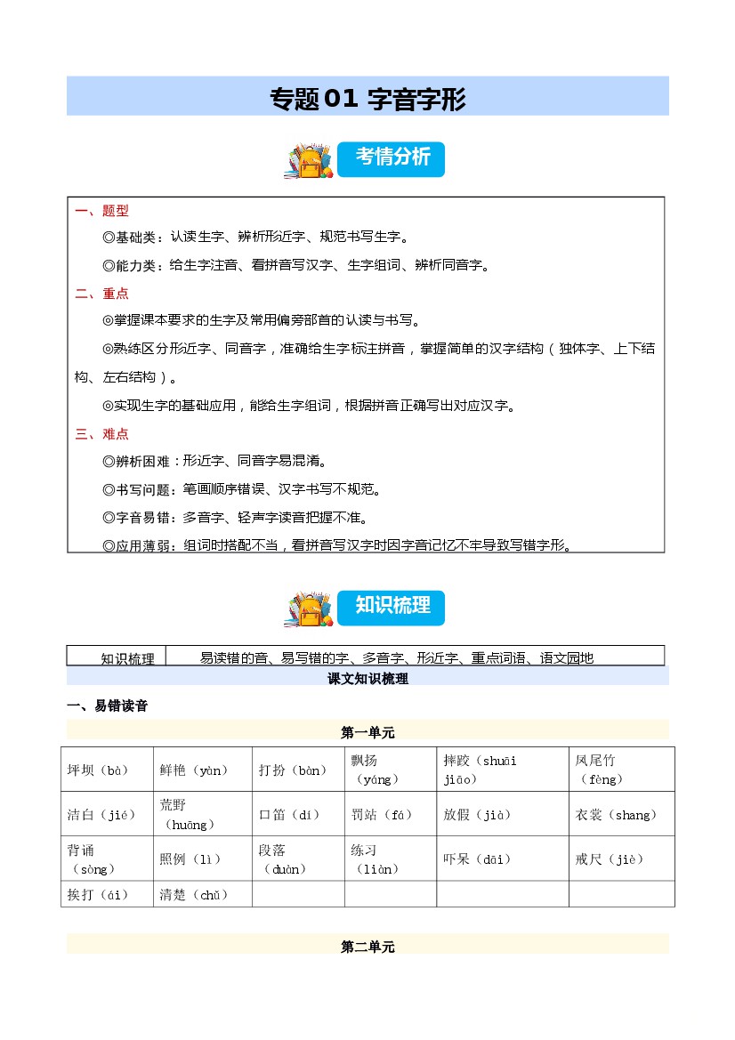 专题01+字音字形(期中专项训练)三年级语文上学期(统编版·新教材)+