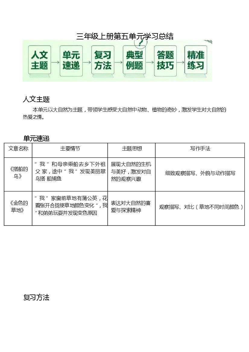 阅读复习 第五单元(期末专项训练)三年级语文上学期(统编版·新教材)