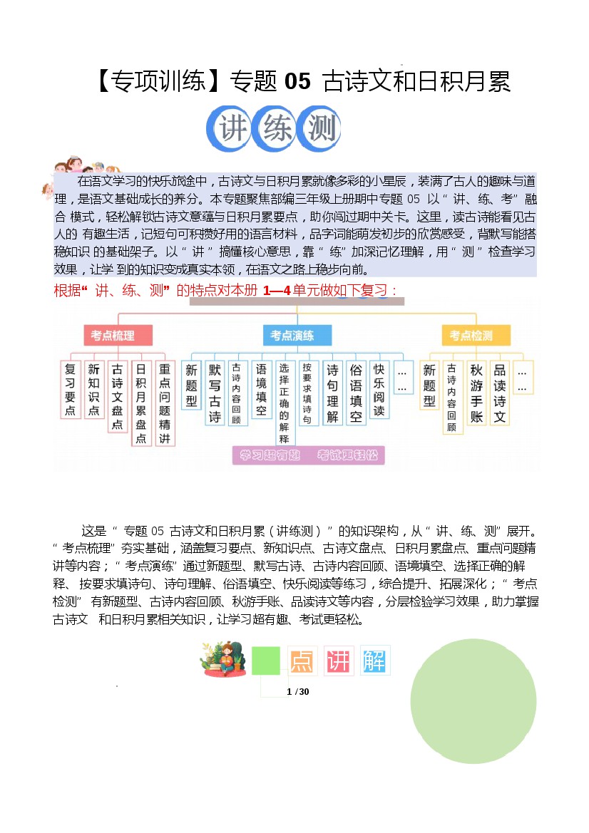 专题 05 古诗文和日积月累(期中专项训练)三年级语文上学期(统编版·新教材)