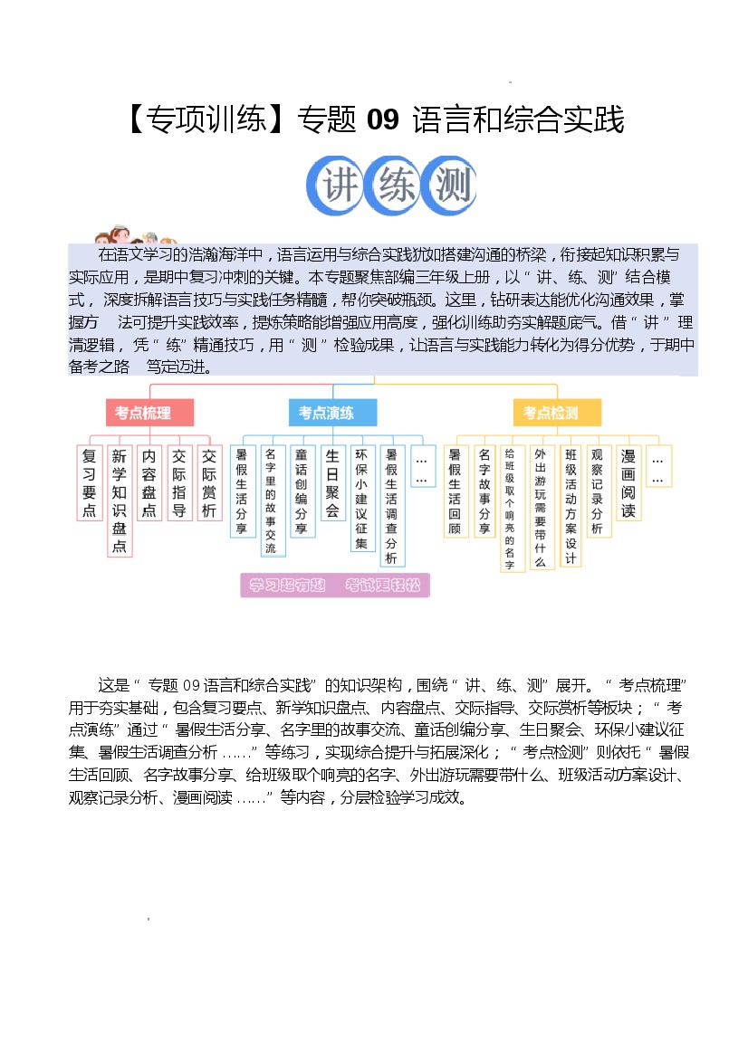 专题 09 语言和综合实践(期中专项训练)三年级语文上学期(统编版·新教材)