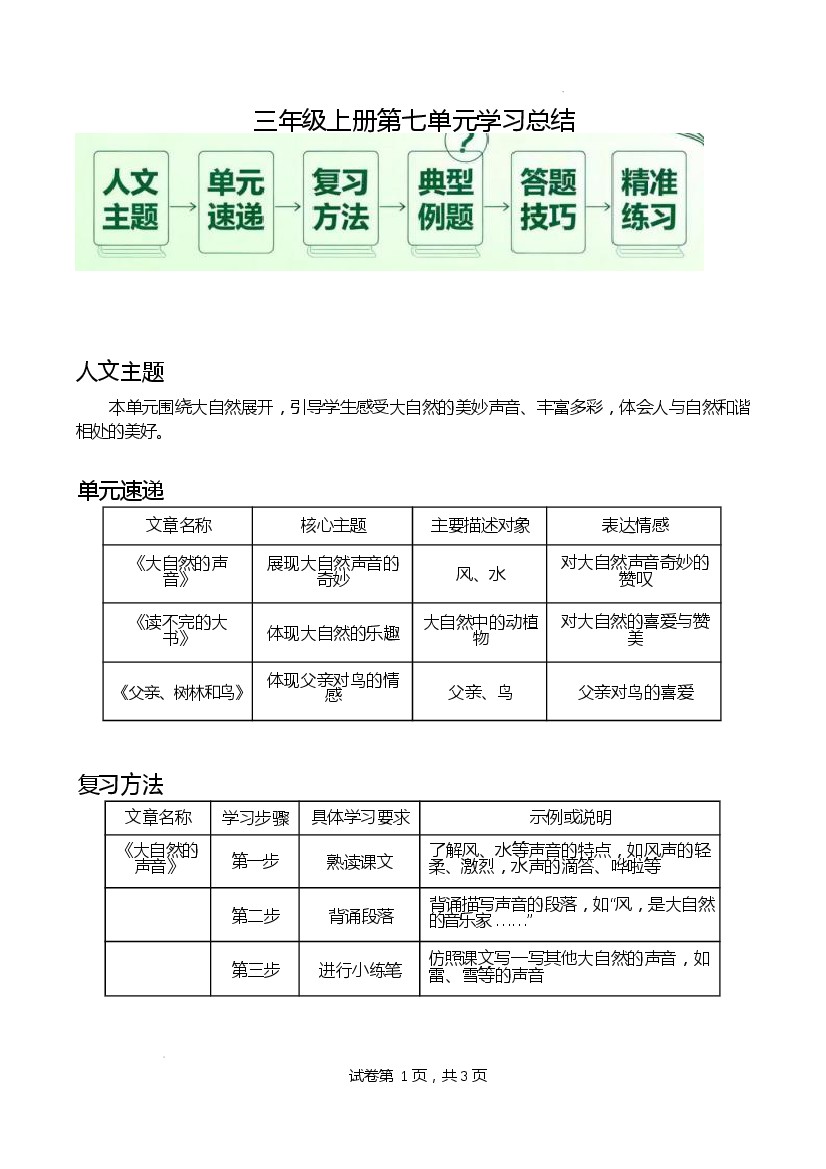 阅读复习 第七单元(期末专项训练)三年级语文上学期(统编版·新教材)