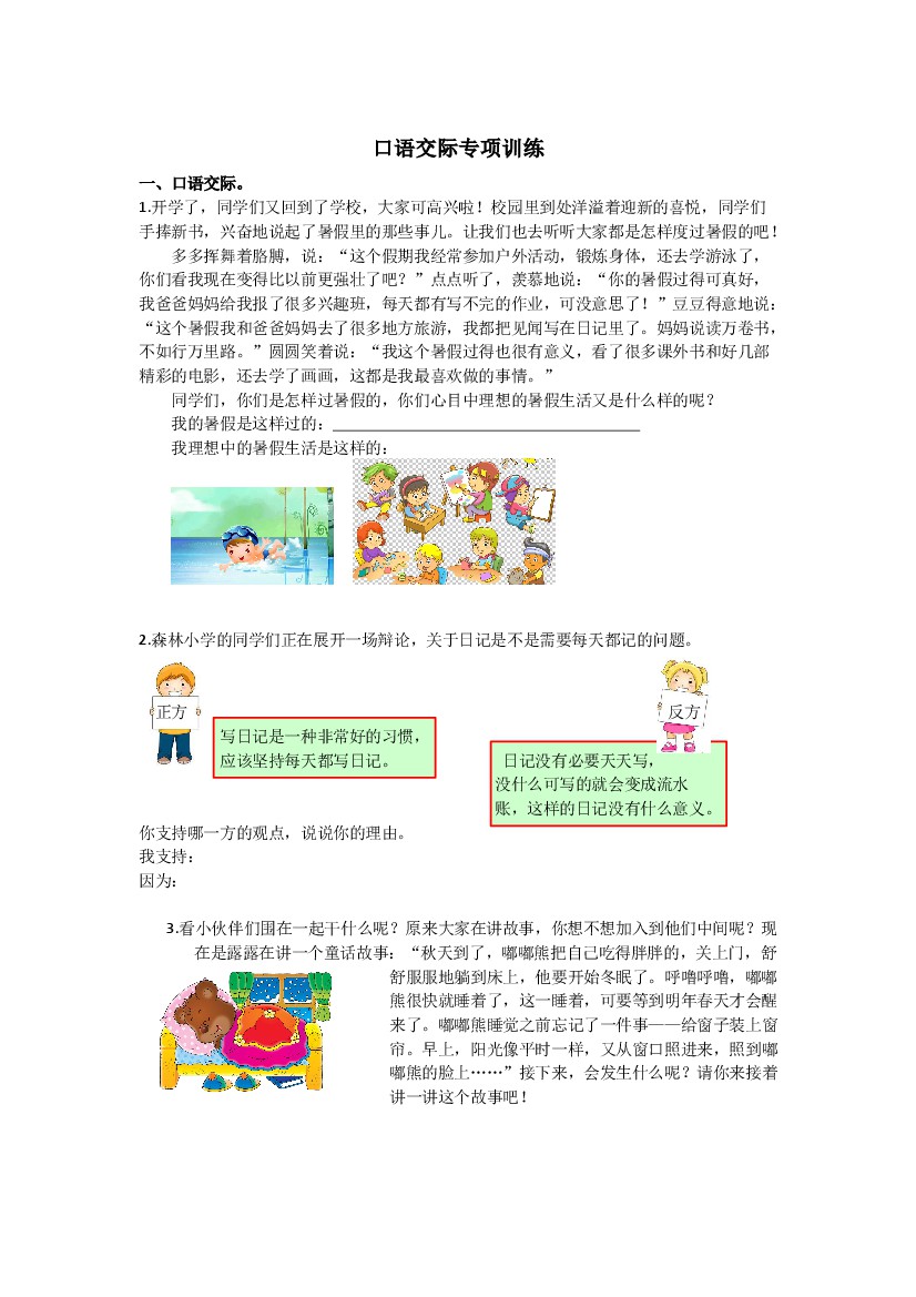 25年秋【三上语文】第一单元口语交际:我的暑假生活课后作业