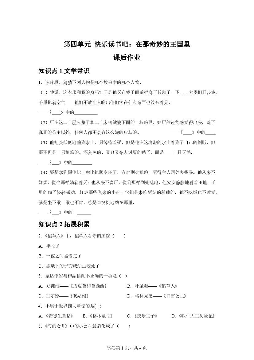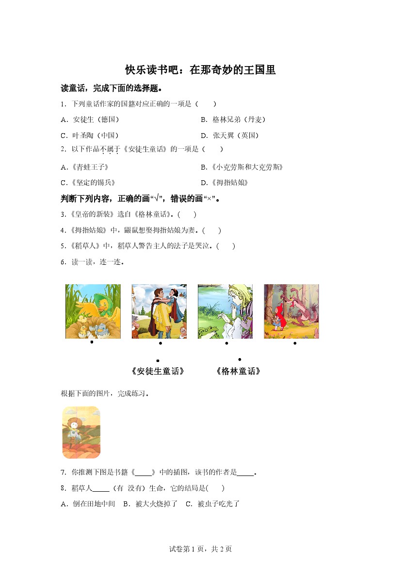 三上语文快乐读书吧知识点汇总(安徒生童话、格林童话、稻草人)7页