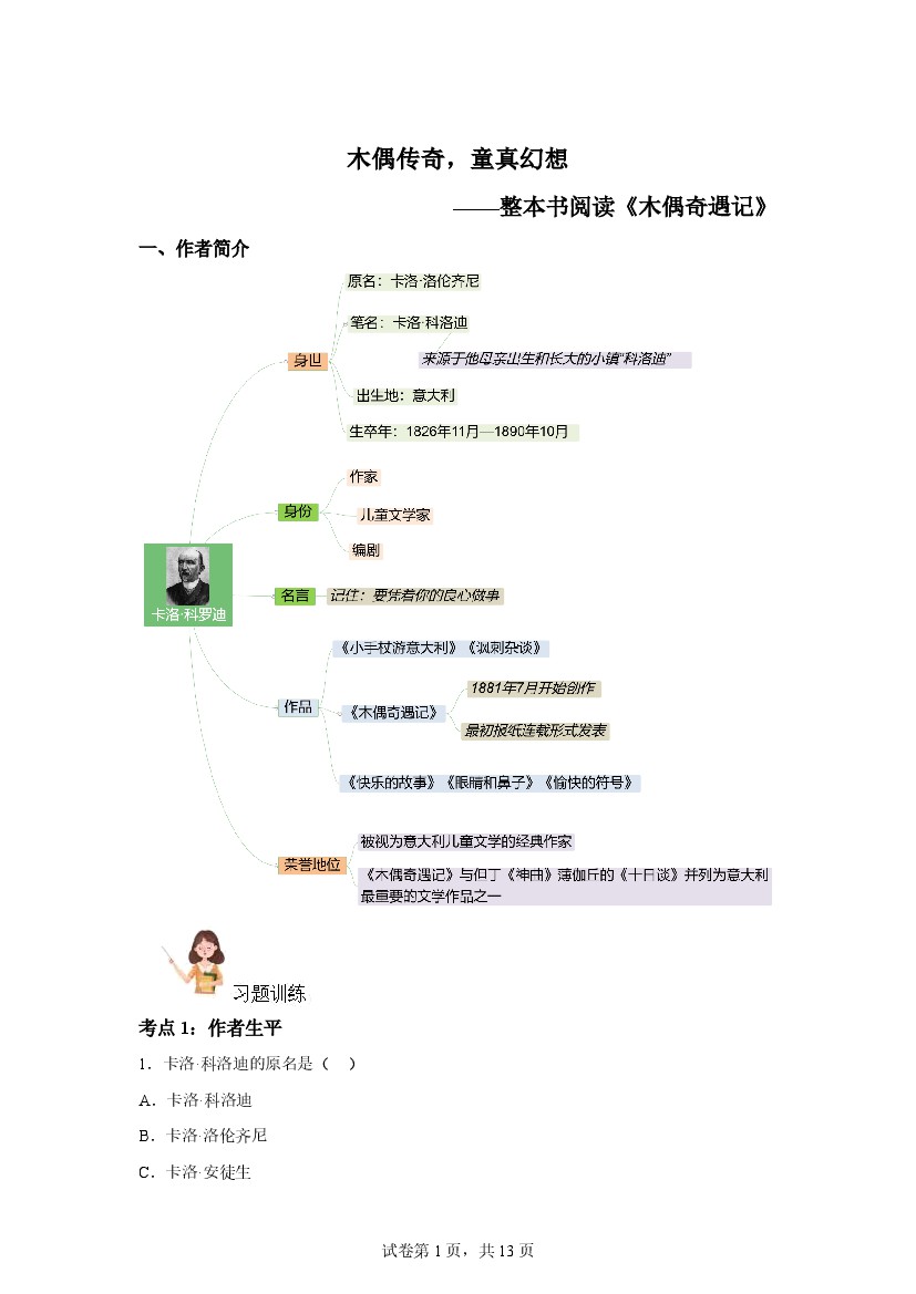 统编版语文三年级上册整本书阅读:木偶奇遇记