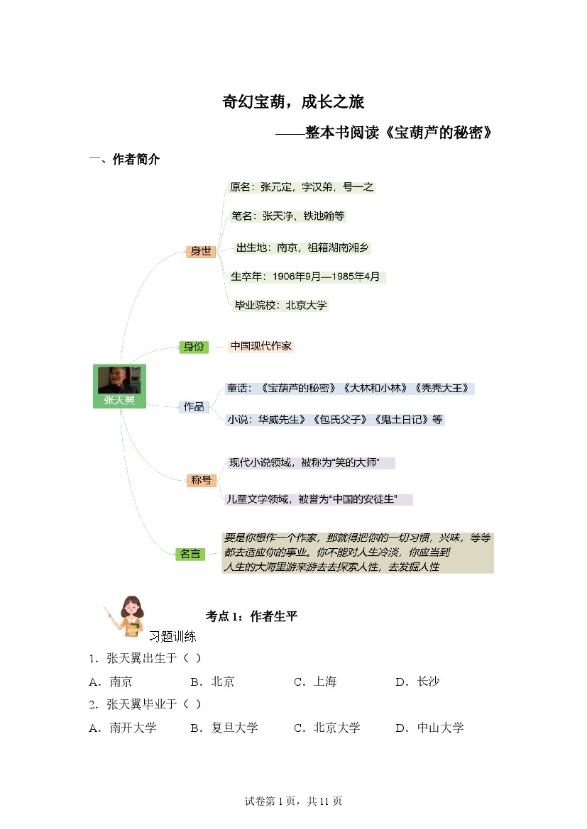 统编版语文三年级上册整本书阅读:宝葫芦的秘密
