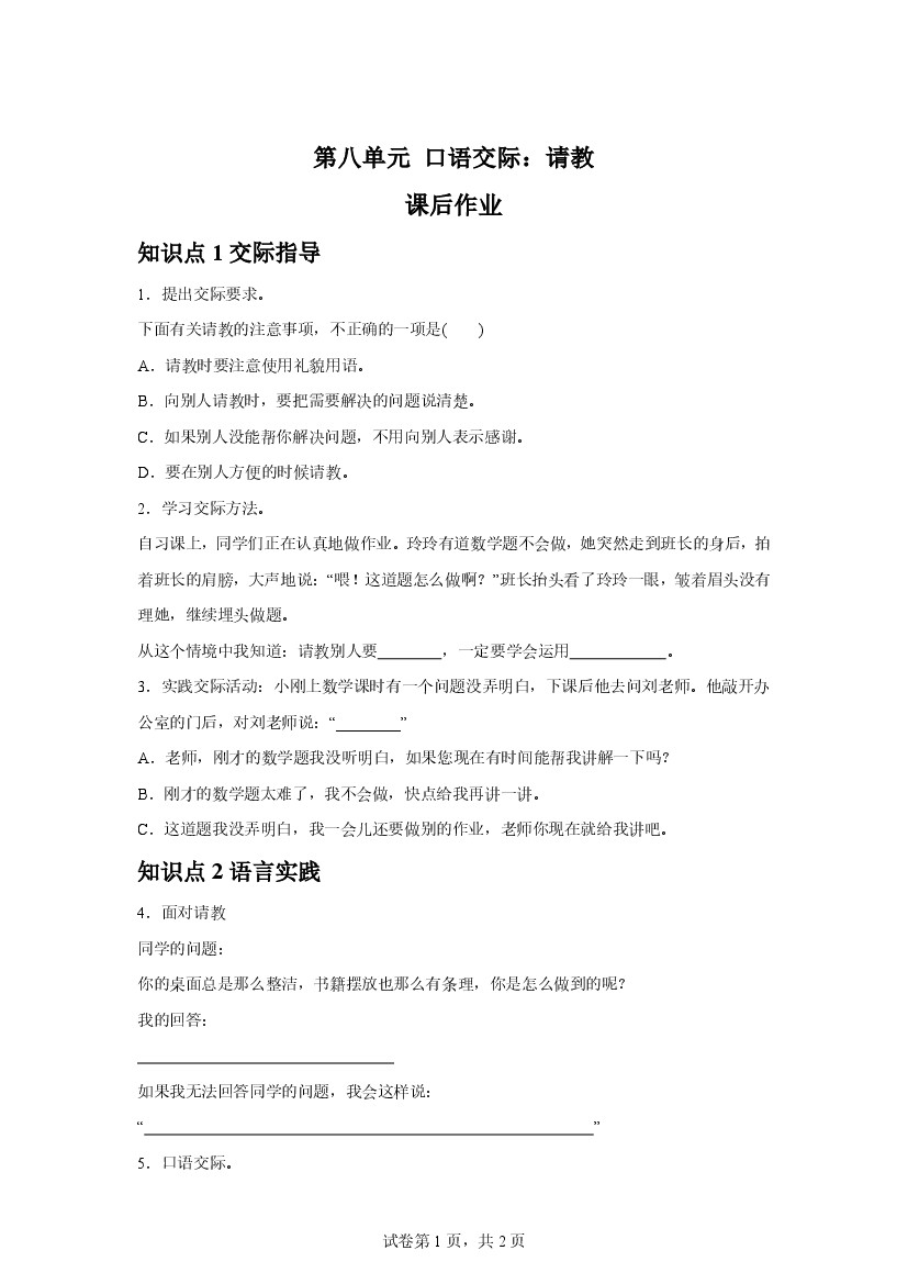 25年秋【三上语文】第八单元口语交际:请教课后作业